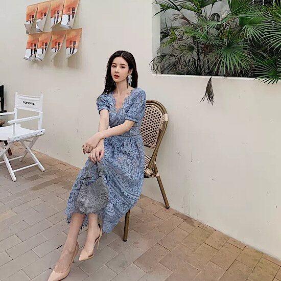 繊細な刺繍レースを使用したシンプルな総レースドレス。