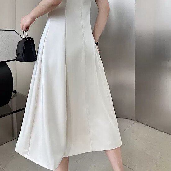 シンプルなひざ丈Aラインスカートのデザインはお呼ばれ、パーティーにも対応できる優秀デザイン!