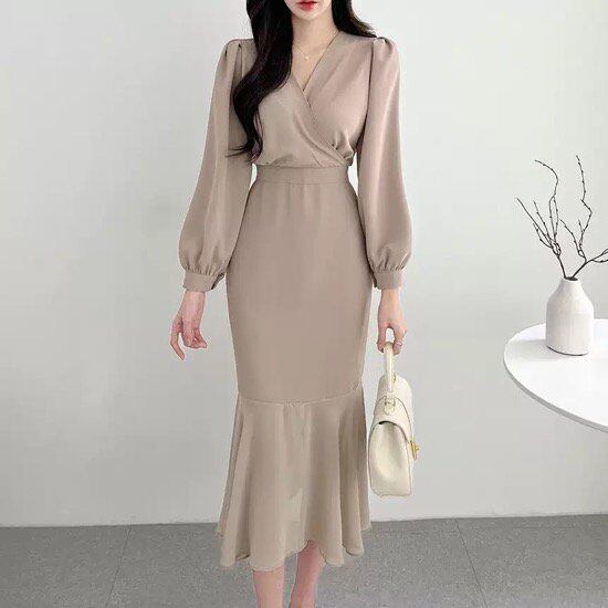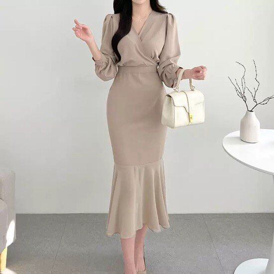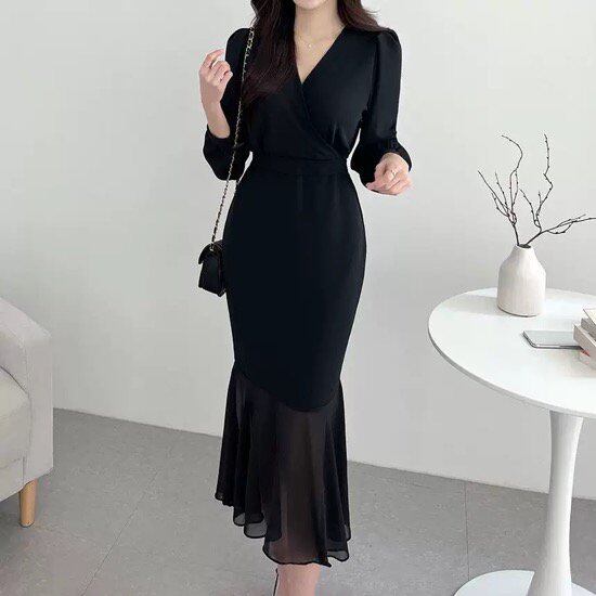 深Vネックでフィッシュテールスカートが大人セクシーな印象!