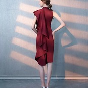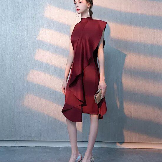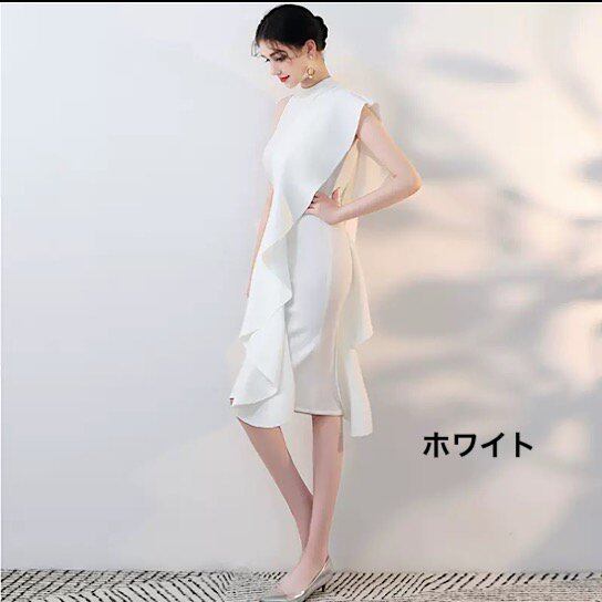 結婚式ドレス イブニングドレス 膝丈 スリム ドレープスカート 発表会 演奏会 レディース 結婚式 ステージ衣装 エレガント ウエディングドレス カラードレス 無地 シンプル 上品