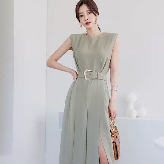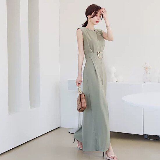 結婚式ドレス パンツドレス ワイドレッグ ジャンプスーツ ノースリーブ ベルト付き ラウンドネック シック シンプル 発表会 演奏会 レディース 結婚式 ステージ衣装 ロング丈 カラードレス