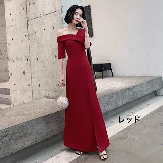 演奏会ドレス ワンショルダー 無地 スリット イブニングドレス 発表会 演奏会 レディース 結婚式 ステージ衣装 半袖 ロング丈 エレガント ウエディングドレス カラードレス 結婚式ドレス