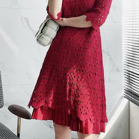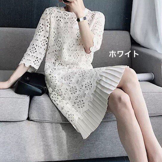 結婚式ドレス レース 七分袖 ラウンドネック シック シンプル プリーツ 発表会 演奏会 レディース 結婚式 ステージ衣装 膝丈 エレガント ウエディングドレス カラードレス 刺繍