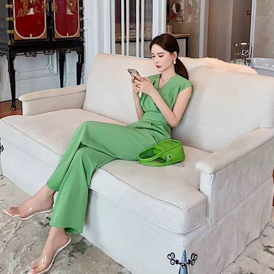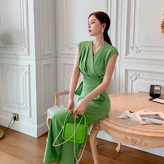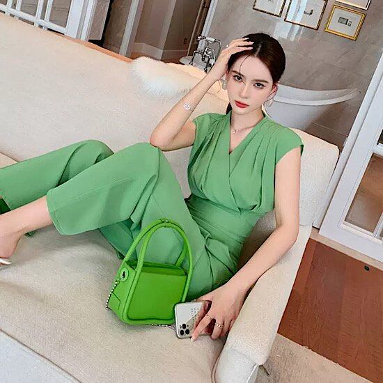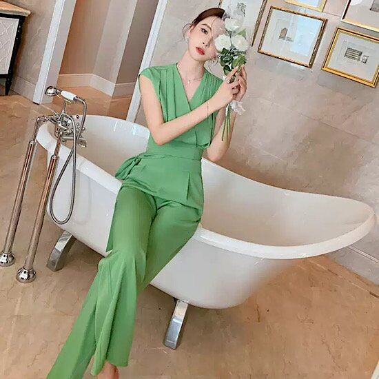 結婚式ドレス ノースリーブ パンツドレス Vネック ハイウエスト ワイドレッグ 発表会 演奏会 レディース 結婚式 ステージ衣装 ロング丈 エレガント ウエディングドレス カラードレス