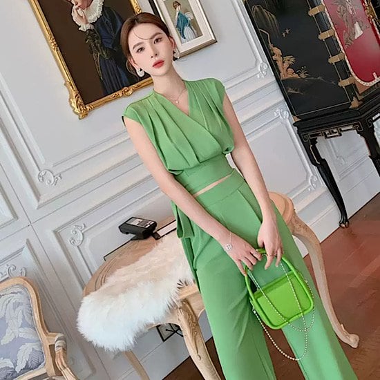 カシュクール風Vネックで顔周りをすっきり見せてくれます。