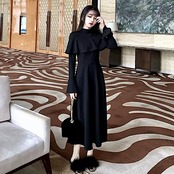 結婚式ドレス ロイヤル 気品 ミモレ丈 長袖 リッチ フレンチ レトロ クルーネック 発表会 演奏会 レディース フレアドレス 結婚式 ステージ衣装 エレガント ウエディングドレス カラードレス