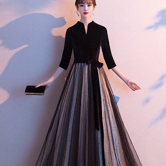 演奏会ドレス イブニングドレス レース ウエスト切り替え 五分袖 無地 発表会 演奏会 レディース 結婚式 ステージ衣装 ロング丈 エレガント ウエディングドレス カラードレス Aライン