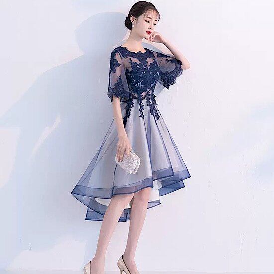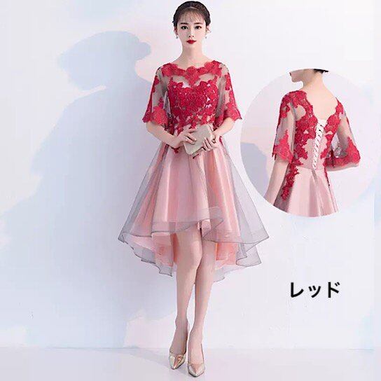 結婚式ドレス フィッシュテール レース 刺繍 シースルー ミニ イブニングドレス 発表会 演奏会 レディース フレアドレス 結婚式 ステージ衣装 エレガント ウエディングドレス カラードレス