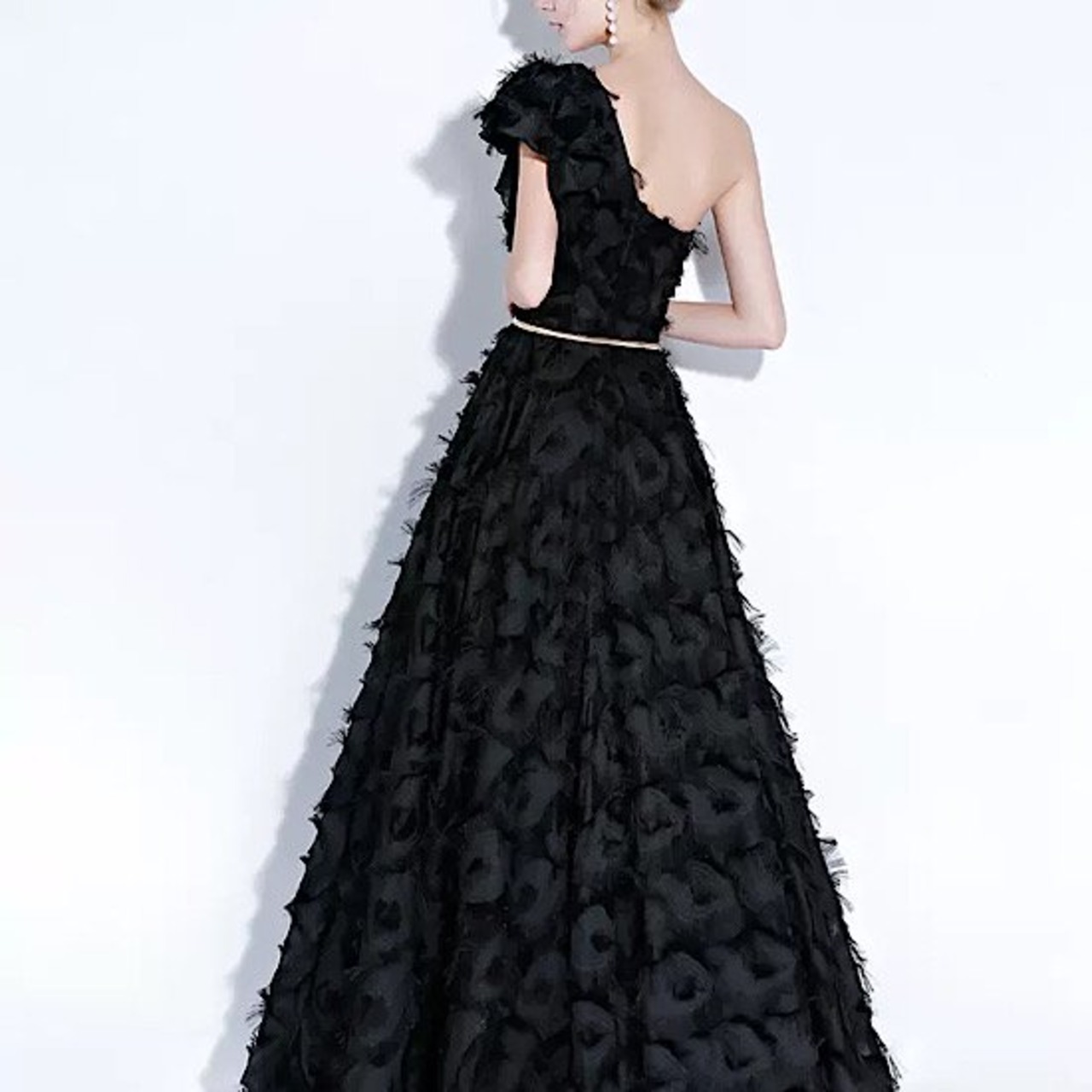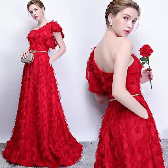 演奏会ドレス フェザー ワンショルダー 発表会 演奏会 レディース Aライン結婚式 ステージ衣装 ロング丈 エレガント ウエディングドレス カラードレスイブニングドレス ウエストマーク