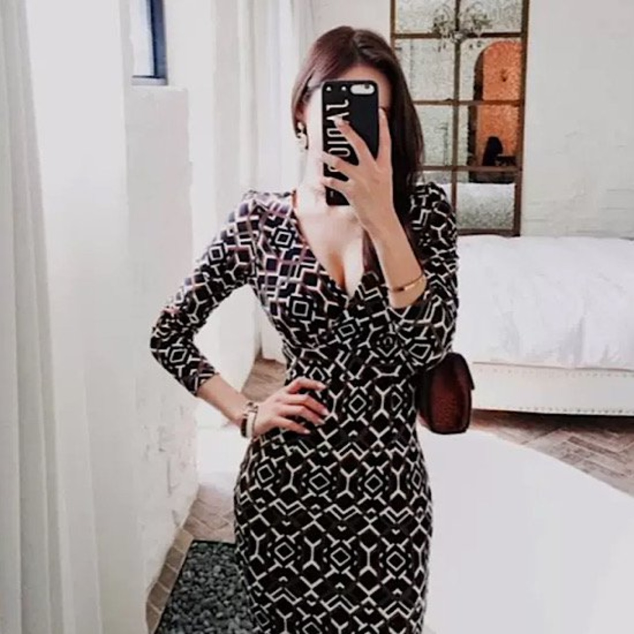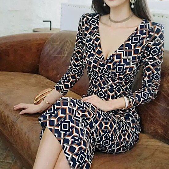 結婚式ドレス タイト スリムフィット 幾何学模様 Vネック 発表会 演奏会 レディース 結婚式 ステージ衣装 ミモレ丈 エレガント ウエディングドレス カラードレス 七分袖 スリット