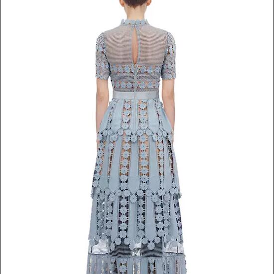 演奏会ドレス 花柄 ハイネック シースルー 発表会 演奏会 レディース 結婚式 ステージ衣装 半袖 ロング丈 エレガント ウエディングドレス カラードレス 刺繍 軽やか 涼しげ 淡い色合い