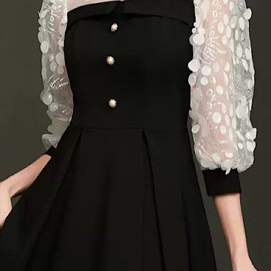 袖付きで二の腕カバーも出来るモノトーンカラーはパーティーや女子会で着ても大人レディになれる膝丈ワンピ♪