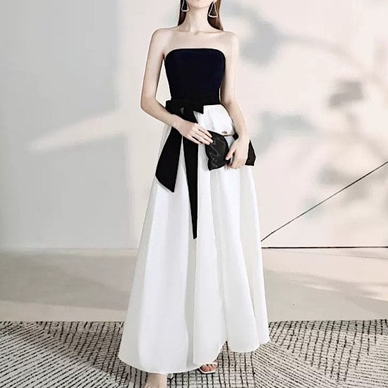 演奏会ドレス 発表会ドレス チューブトップ バイカラー モノトーン 無地 デコルテ レディース フレアドレス 結婚式 ステージ衣装 ロング丈 エレガント ウエディングドレス カラードレス