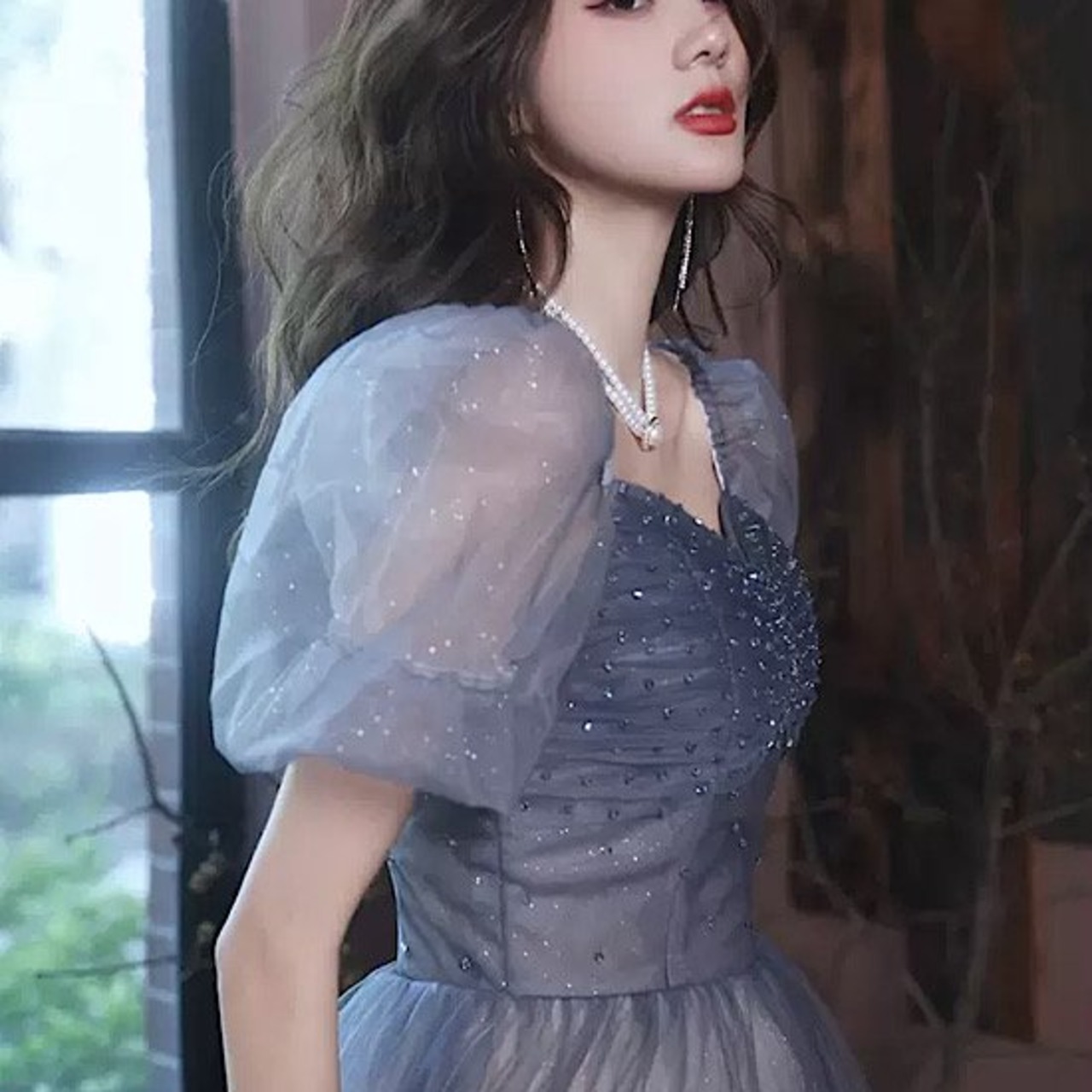 演奏会ドレス 発表会ドレス ハートカット パフスリーブ ウエスト切り替え イブニングドレス 発表会 演奏会 レディース フレアドレス ステージ衣装 ロング丈 エレガント ウエディングドレス