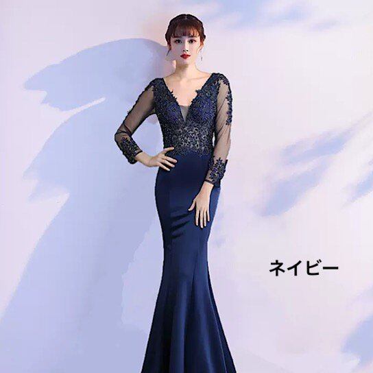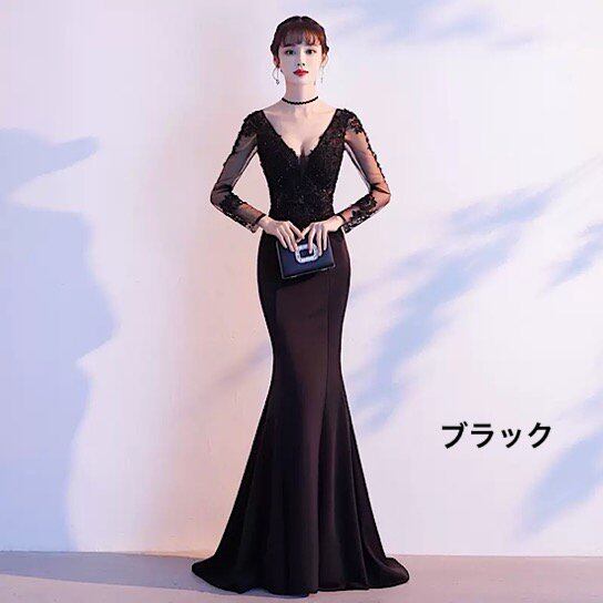 演奏会ドレス 発表会ドレス Vネック マーメイド イブニングドレス 長袖 デコルテ 発表会 演奏会 レディース 結婚式 ステージ衣装 ロング丈 エレガント ウエディングドレス カラードレス