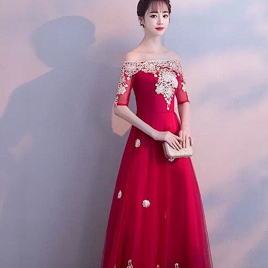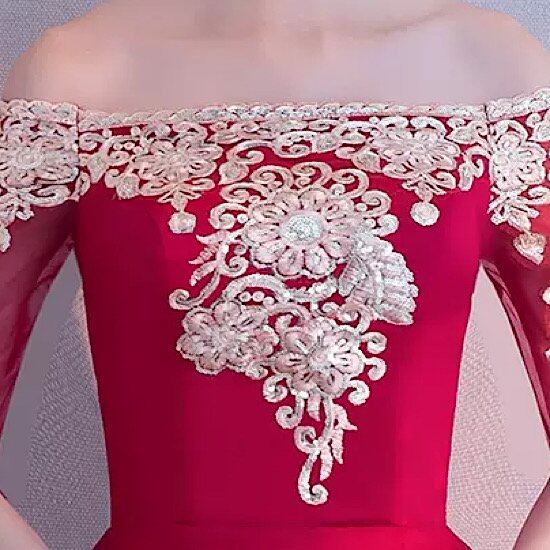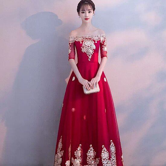 演奏会ドレス 発表会ドレス オフショルダー Aライン 刺繍 デコルテ 発表会 演奏会 レディース 結婚式 ステージ衣装 半袖 ロング丈 エレガント ウエディングドレス カラードレス