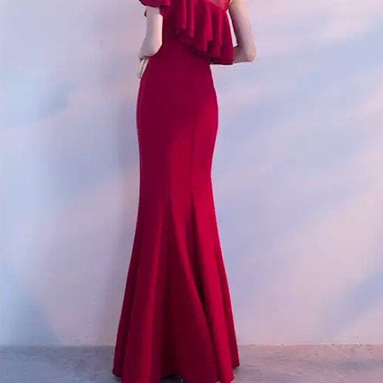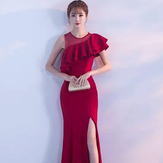 演奏会ドレス 発表会ドレス イブニングドレス フリル アシンメトリー 細身 スリット入り ラウンドネック 発表会 演奏会 レディース ステージ衣装 ロング丈 エレガント カラードレス