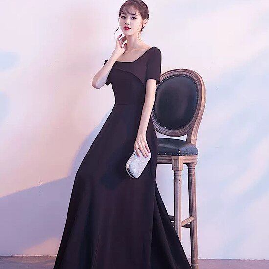 演奏会ドレス 発表会ドレス ワンショルダー 無地 シンプル クール Aライン 発表会 演奏会 レディース 結婚式 ステージ衣装 半袖 ロング丈 エレガント ウエディングドレス カラードレス