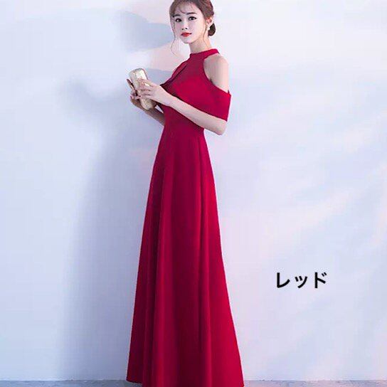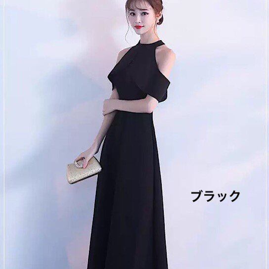 演奏会ドレス 発表会ドレス オープンショルダー ホルターネック 発表会 演奏会 レディース 結婚式 ステージ衣装 ロング丈 エレガント ウエディングドレス カラードレス 滑らか シンプル