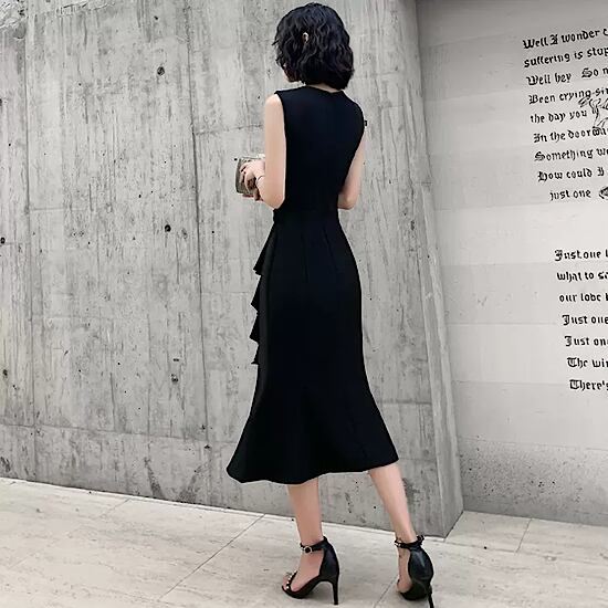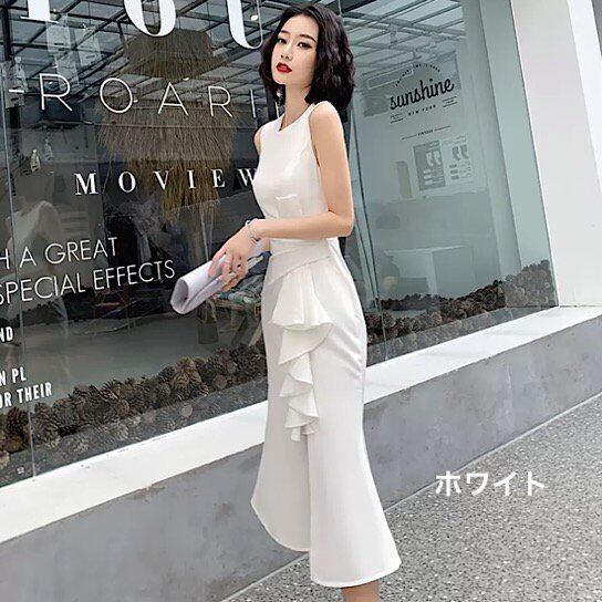 演奏会ドレス 発表会ドレス ノースリーブ ラウンドネック 発表会 演奏会 レディース フレアドレス 結婚式 ステージ衣装 ミモレ丈 エレガント ウエディングドレス カラードレス フリル 無地