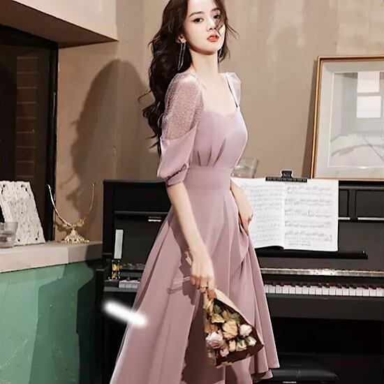 演奏会ドレス 発表会ドレス スクエアネック デコルテ シースルー ハイウエスト 発表会 演奏会 レディース 結婚式 ステージ衣装 ロング丈 エレガント ウエディングドレス カラードレス シンプル