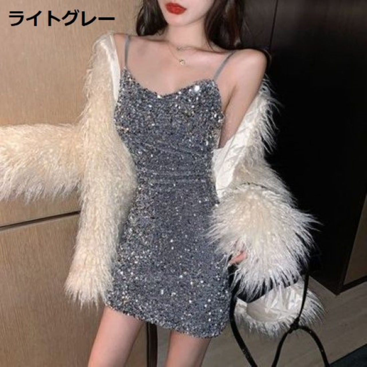 パーティードレス レディース キャミソールワンピース キャミワンピ ショート丈 ミニワンピース スパンコール きらきら Vネック 光沢 セクシー きれいめ お呼ばれ おしゃれ ナイトクラブ 女性