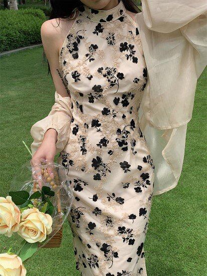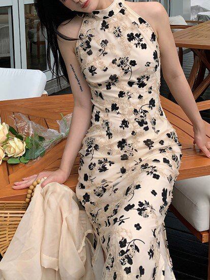 パーティードレス レディース ワンピース 結婚式ドレス 演奏会ドレス ホルターネック ノースリーブ 花柄 フラワー スリムフィット タイト 刺繍 ハイウエスト きれいめ エレガント セクシー お呼ばれ