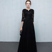 細見えスレンダーなボディラインに、細やかなレース刺繍がエレガントなセクシーさを醸し出す、ロング丈ドレス。