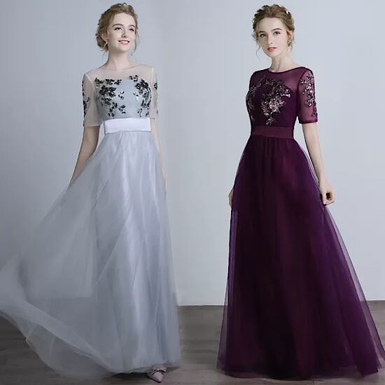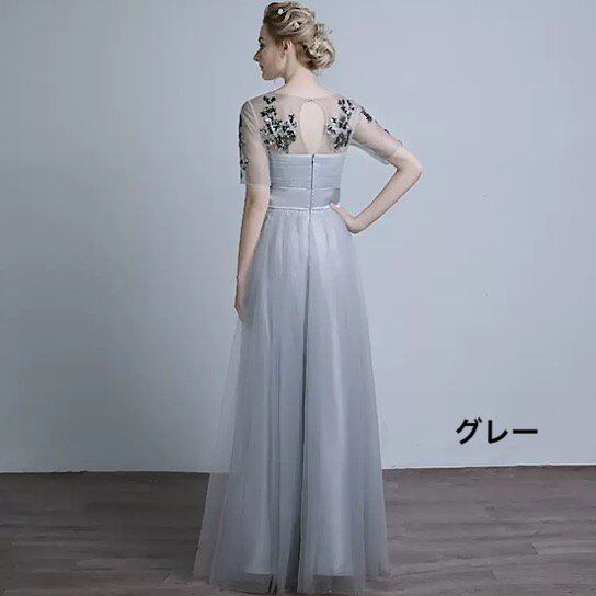 演奏会ドレス 発表会ドレス ラウンドネック シースルー 発表会 演奏会 レディース 結婚式 ステージ衣装 五分袖 ロング丈 エレガント ウエディングドレス カラードレス ハイウエスト イブニングドレス