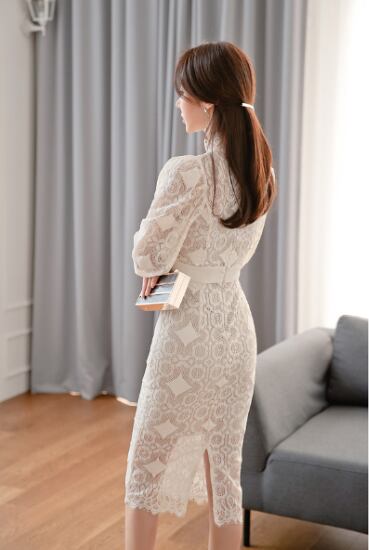 総レースデザインがおしゃれなパーティードレス。