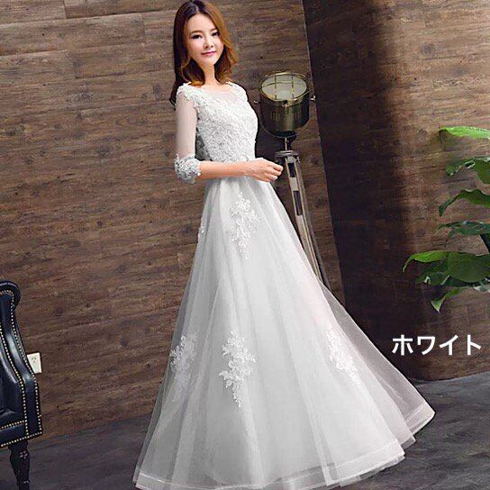 演奏会ドレス 発表会ドレス ラウンドネック 発表会 演奏会 レディース Aライン 結婚式 ステージ衣装 五分袖 ロング丈 エレガント ウエディングドレス カラードレス ウエストリボン