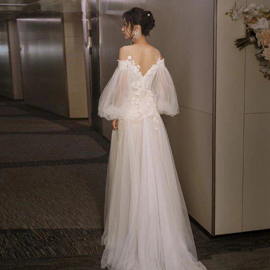 ウエディングドレス レディース ワンピースドレス 結婚式ドレス パーティードレス ロングドレス オフショルダー 刺繍 シースルー レース きれいめ エレガント セクシー デコルテ 肌見せ 女性 披露宴