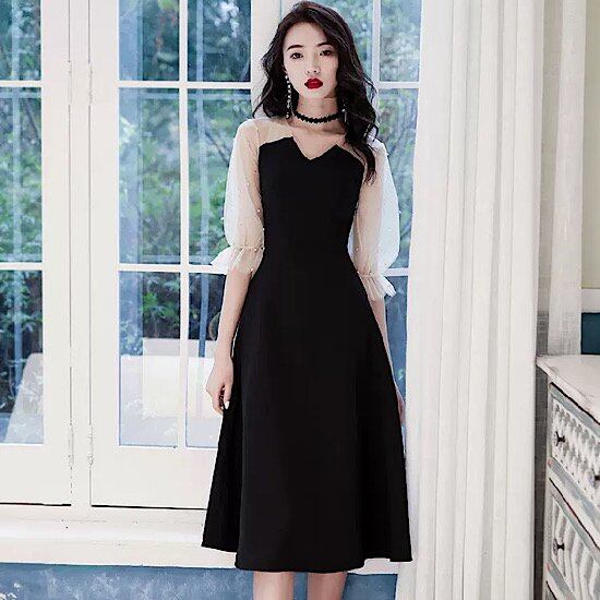 結婚式ドレス シースルー ハートカット 無地 発表会 演奏会 レディース フレアドレス 結婚式 ステージ衣装 ミディアム丈 エレガント ウエディングドレス カラードレス シック シンプル