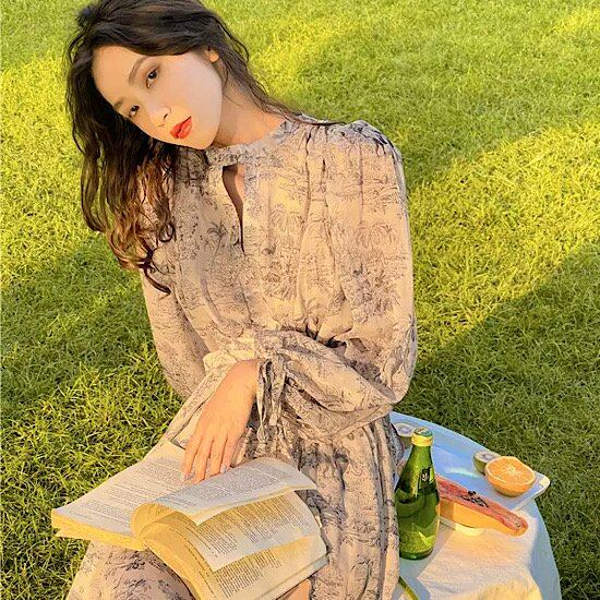 軽やかシフォンのヨーロピアンワンピースドレス。