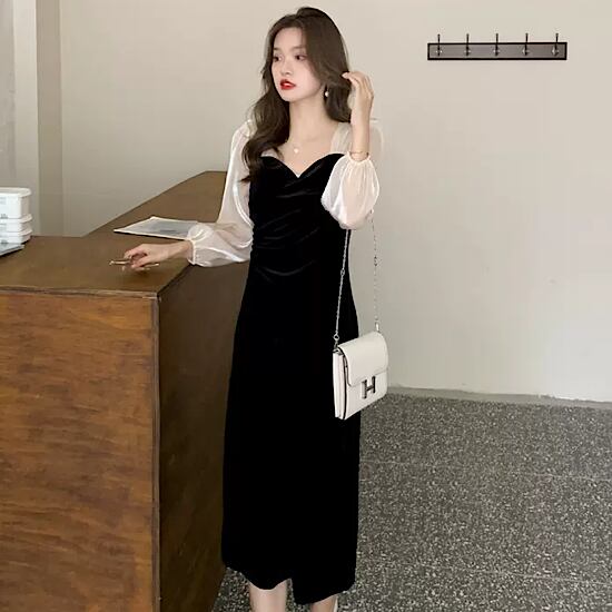 結婚式ドレス ハートカット ミディアム丈 シンプル デコルテ ロマンチック 発表会 演奏会 レディース 結婚式 ステージ衣装 長袖 エレガント ウエディングドレス カラードレス