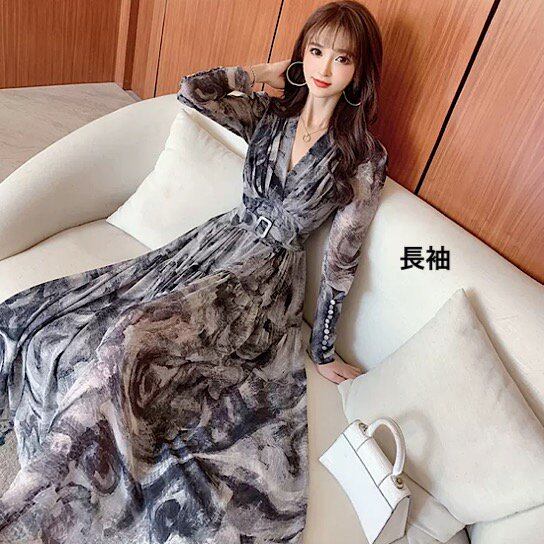 結婚式ドレス シフォン 軽やか 長袖 スリム Vネック ベルト付き 発表会 演奏会 レディース 結婚式 ステージ衣装 半袖 ロング丈 エレガント ウエディングドレス カラードレス ハイウエスト