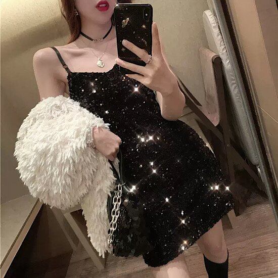 結婚式ドレス スパンコール キャミ ミニドレス サスペンダー セクシー デコルテ ラメ入り キラキラ 発表会 演奏会 レディース 結婚式 ステージ衣装 エレガント ウエディングドレス カラードレス