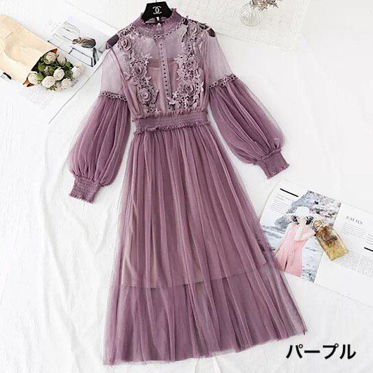 チュール&レースが大人の可愛さを引き立てるドレスワンピース。