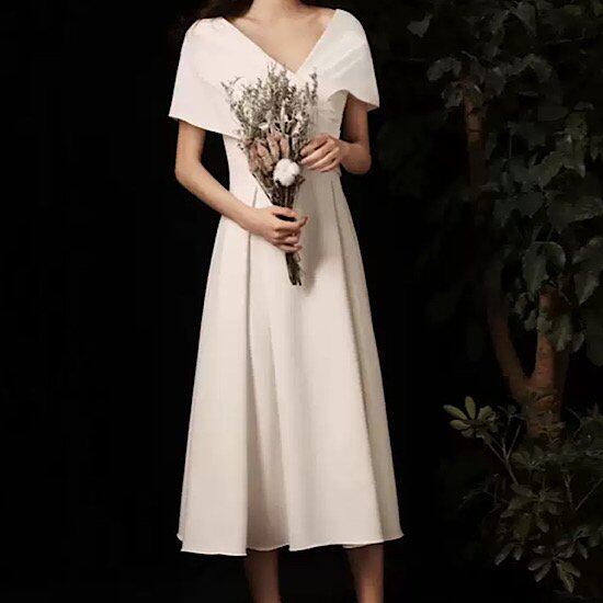 結婚式ドレス ミモレ丈 アシンメトリーデザイン 無地 シンプル Aライン 発表会 演奏会 レディース 結婚式 ステージ衣装 エレガント ウエディングドレス カラードレス ウエディングドレス