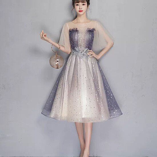 結婚式ドレス レース Aライン キラキラ ミモレ丈 五部袖 花柄 刺繍 発表会 演奏会 レディース 結婚式 ステージ衣装 エレガント ウエディングドレス カラードレス バックコンシャス