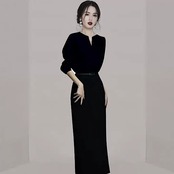 モレ丈が上品な雰囲気の長袖ワンピースドレス。