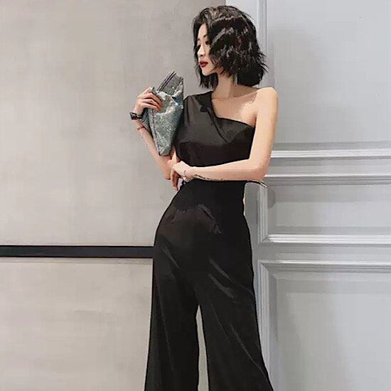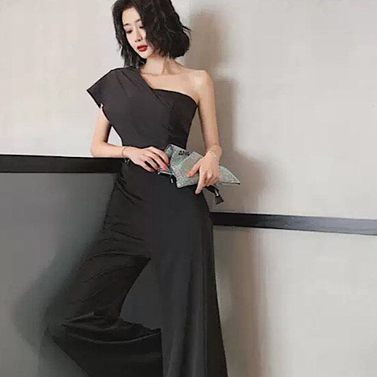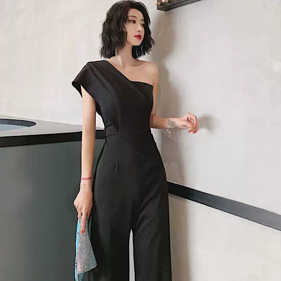 結婚式ドレス ワンショルダー パンツドレス 無地 セクシー シンプル 発表会 演奏会 レディース 結婚式 ステージ衣装 エレガント ウエディングドレス カラードレス イブニングドレス ワイドレッグ