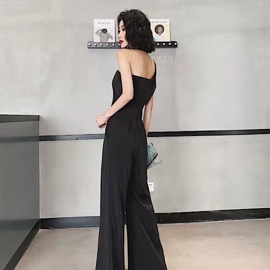シンプルなデザインながらも大人っぽく上品なパンツドレス。