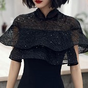 デコルテのキラキラなフリルレースで柔らかな印象のロングドレス。