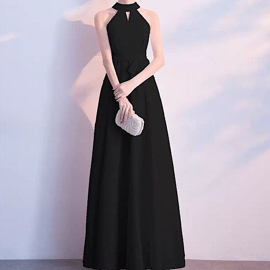 結婚式ドレス ホルターネック マキシ丈 ノースリーブ 無地 シンプル 発表会 演奏会 レディース 結婚式 ステージ衣装 エレガント ウエディングドレス カラードレス イブニングドレス