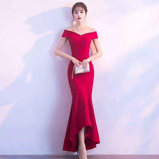 結婚式ドレス オフショルダー ロング丈 マーメイド 無地 シンプル ハイウエスト 発表会 演奏会 レディース 結婚式 ステージ衣装 エレガント ウエディングドレス カラードレス イブニングドレス