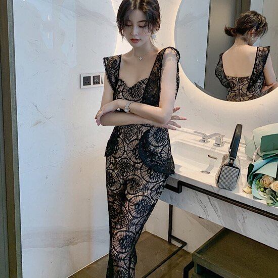 結婚式ドレス ジャンプスーツ ハートカット レース ノースリーブ ハイウエスト 発表会 演奏会 レディース 結婚式 ステージ衣装 エレガント カラードレス イブニングドレス スリム セクシー