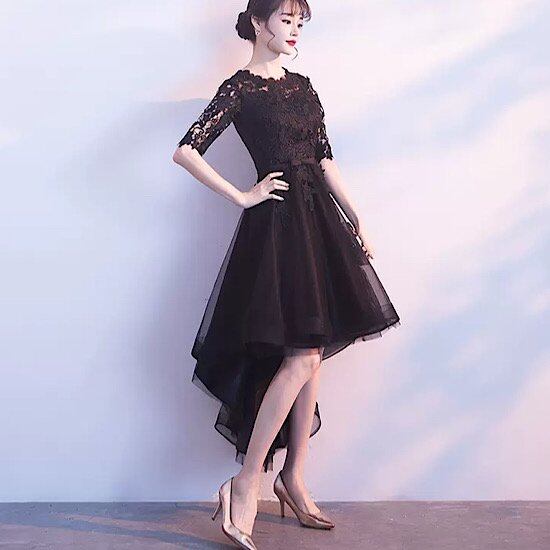 スカート丈のアシメが華やかでセクシーなワンピースドレス。