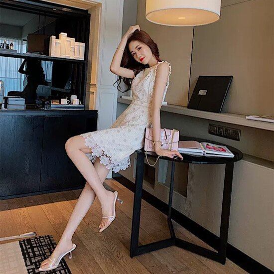 柔らかい女らしい雰囲気でフェミニンさを演出するミニドレス。