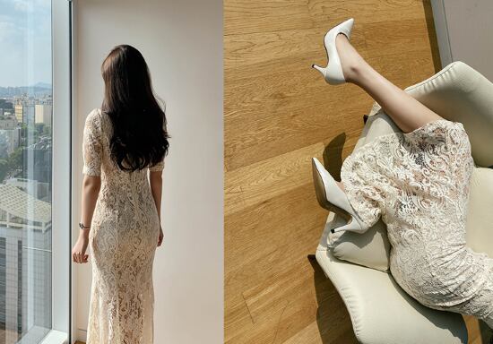 パーティードレス レディース ワンピース 演奏会ドレス 結婚式ドレス ミドル丈ワンピース 総レース Vネック 半袖 マーメイドスカート きれいめ エレガント お呼ばれ パーティー 女性 ワンピース